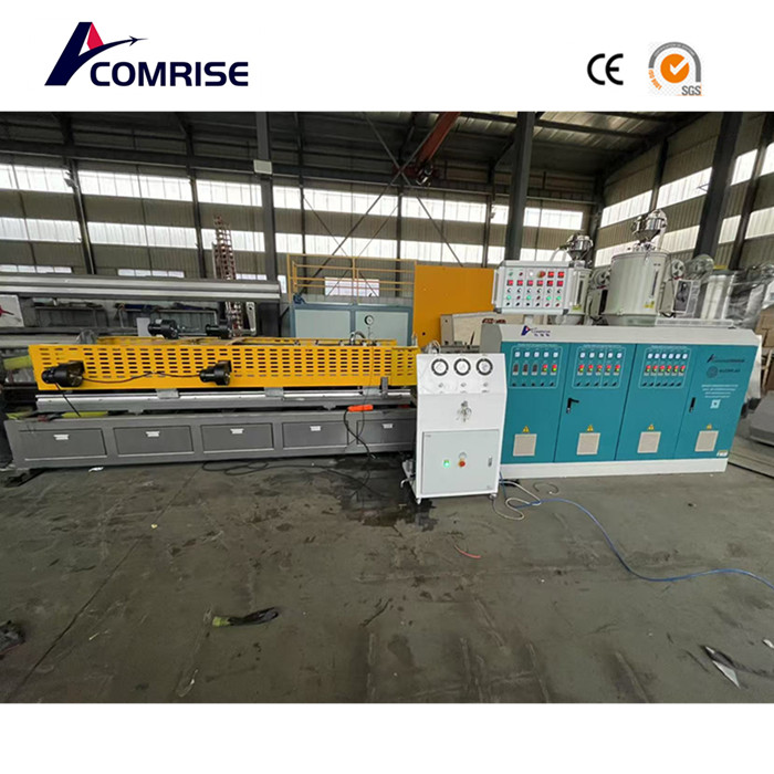 Extrudér na výrobu rúr z dvojitého steny pozostáva z skrutkovej tyče, valca, reduktora, rámu extrudéra hlavy, systému chladenia vody a vzduchu, mazacieho systému, systému regulácie teploty, prevodovky atď. Všetky diely vyrábajú dobre známe výrobcovia a známe značky dodávateľov.